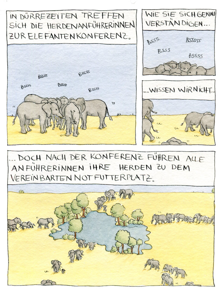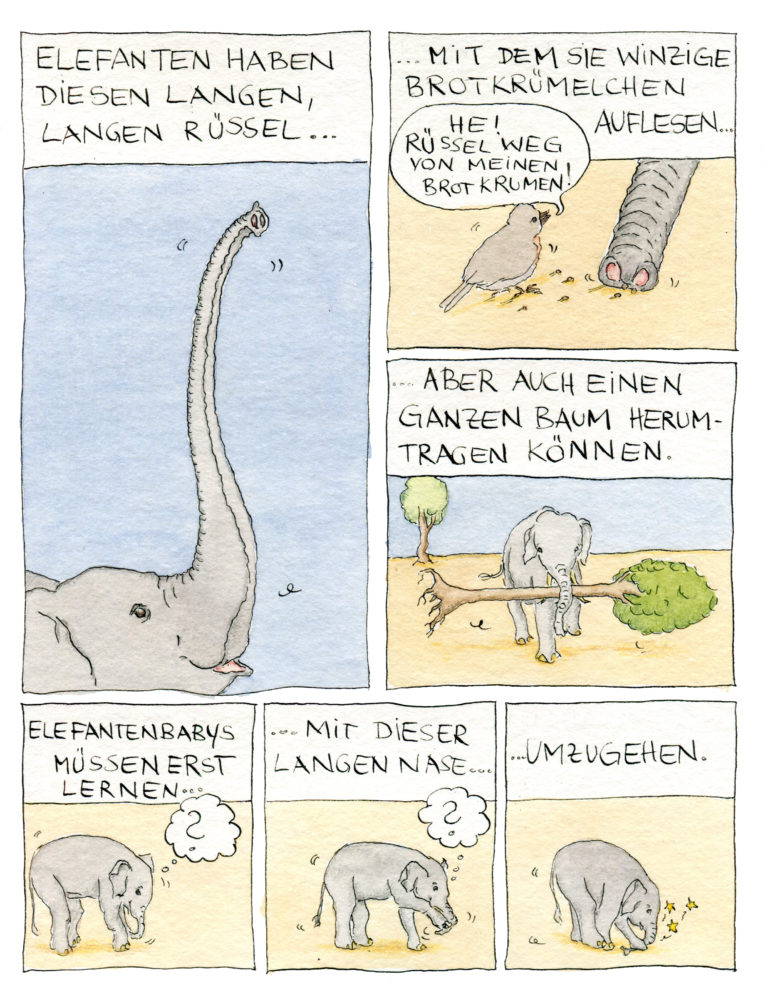 In meinem neuen filigran gezeichneten Wissenschaftscomic über Elefanten erhältst du Antworten auf diese und andere Fragen.